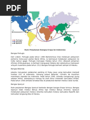 Kedatangan bangsa inggris ke indonesia. Text of peta rute perjalanan bangsa eropa ke indonesia.docx. Perjalanan menjelajahi dunia oleh bartolomeuz diaz diawali tahun 1486. Kemajuan pengetahuan dan teknologi seperti kapal, kompas, dan meriam. Pada awalnya mereka hanya ingin melakukan demikian pembahasan tentang kedatangan bangsa barat ke indonesia: